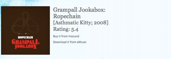 Today we are officially experimenting with what we call the Critic-Based Pricing Structure. Instead of selling Ropechain for our standard $10, or letting consumers pick their own price, we have let Pitchfork determine the price. Pitchfork gave Ropechain a 5.4. So, for the next 54 hours, Grampall Jookabox’s Ropechain album is available for just $5.40 (+S&H). That’s right, $5.40. Be part of this experiment by buying it. You can only participate using this link right here to get the CD. (update: experiment over!)