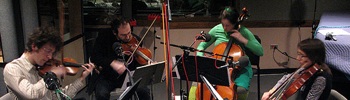 Since the festival, the quartet’s repertoire has grown to include four more of these electronic pieces. After their debut show at Barbes in Brooklyn, Osso was approached by WNYC radio host, David Garland. He entreated the group to record some material for "Spinning on Air" and on Super Bowl Sunday this small feat was accomplished. The show, featuring performances of eight arrangements from Enjoy Your Rabbit as well as an interview with the group, will air at 7pm on Sunday, February 17th. New Yorkers can listen on the radio at FM 93.9 or AM 820 and anyone can stream the show live at WNYC’s website, here. A streaming version of the show will be subsequently available at Osso’s new