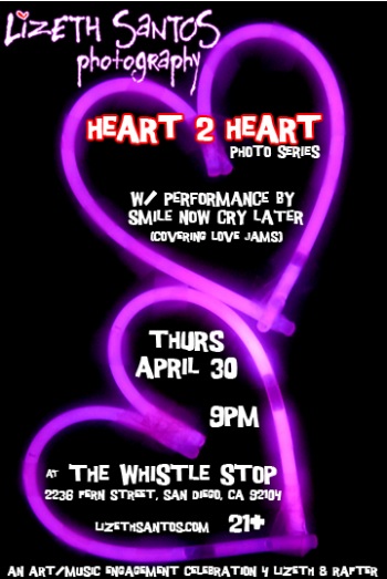To celebrate the engagement, Lizeth and Rafter are throwing an an engagement party/art show/music show/jamboree. Lizeth has made a whole series of heart-themed photos, and Rafter and friends, playing as "smile now, cry later," will play some covers of their favorite love jams.