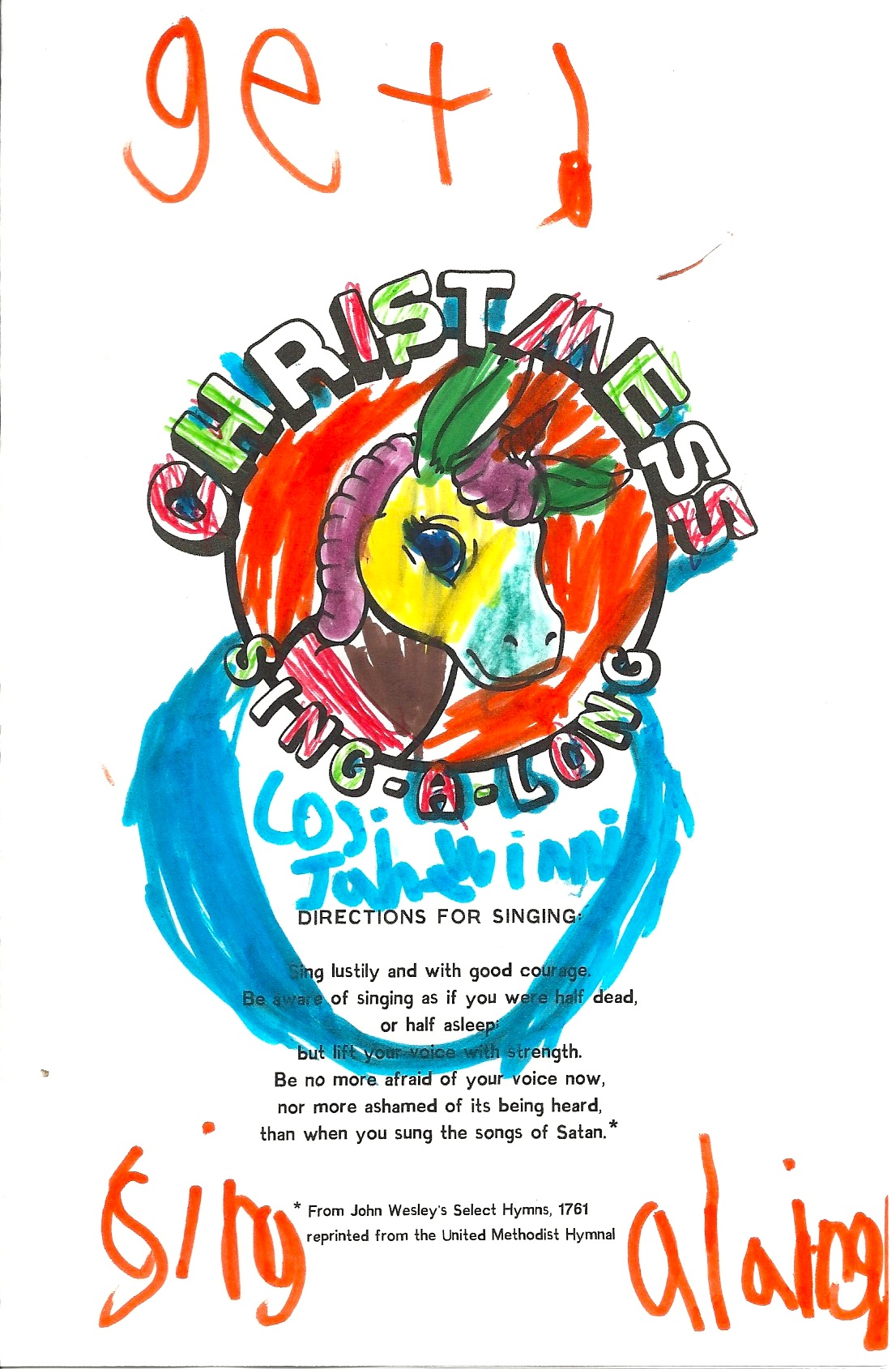 If you’re going to one of the remaining shows from The Sirfjam Stephanapolous Christmas Sing-A-Long Seasonal Affective Disorder Spectacular Music Pageant Variety Show Disaster, you’ll need a songbook. Your entrance fee + ticket reservation accusation + online bandwidth transmission charge + emitted diode light security insurance fee entitles you to receive one at the show, but we know that some of you may wish to have them early so as to study, to color, to share.